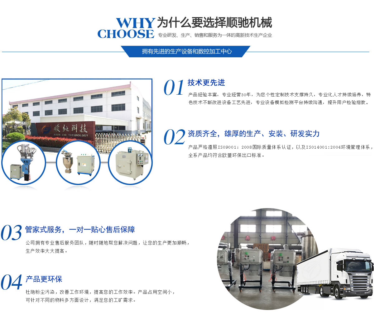 鹽城市順馳機械科技有限公司是一家專業從事電加熱設備、橡塑機械、化纖機械設備、化纖清洗設備、涂裝機械、烘干設備、環保設備、電熱電器的研發、生產、銷售和服務為一體的生產企業,主要生產的產品有: 真空吸料機,真空粉末吸料機,失重式喂料機,真空粉末上料機,真空煅燒爐,稱重式混料機、導熱油加熱器、色母計量系統、原料輸送系統、混合機、空氣加熱器、熱風爐、電加熱器等。 公司占地13333平方米,擁有先進的生產設備和數控加工中心。公司地處世界珍奇動物麋鹿保護區和國家一級丹頂鶴自然保護區&... [